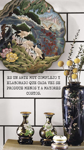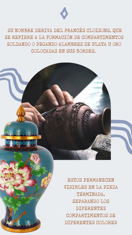El cloisonné también conocido como esmalte alveolado, es una antigua técnica para decorar objetos de metalistería, surgió en Oriente en siglo XIX aC. Su nombre deriva del francés cloisons, que se refiere a la formación de compartimentos soldando o pegando alambres de plata u oro colocadas en sus bordes. Estos permanecen visibles en la pieza terminada, separando los diferentes compartimentos del esmalte o las incrustaciones, que por lo general, son de varios colores. Los objetos de esmalte Cloisonné se trabajan con polvo de esmalte convertido en una pasta, que luego se debe cocer en un horno .