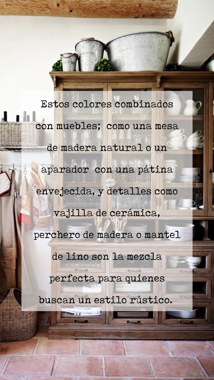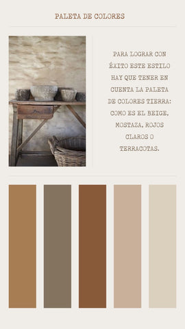 Una de las grandes ventajas del estilo rústico es que es accesible y muy duradero. Para lograr con éxito este estilo hay tener en cuenta la paleta de colores tierra como es el beige, mostaza, rojos claros o terracotas, estos colores combinados con los muebles como una mesa de madera natural o aparador para la cocina con una pátina envejecida, y detalles como vajilla de cerámica, ropa de cama de algodón, perchero de madera o mantel de lino. son la mezcla perfecta para quienes buscan un estilo rústico.