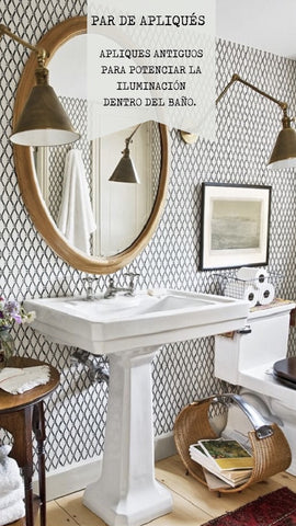 -Apliques antiguos para potenciar la iluminación dentro del baño.