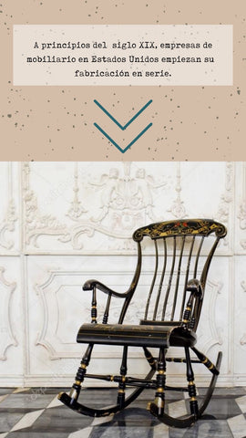 En la primera mitad del siglo XIX, empezaron a ser fabricadas en serie por empresas de mobiliario en Estados Unidos . Eran mecedoras de madera, bambú, metal y mimbre con respaldo de listones, balaustres, brazos y tapizado. La secta de los Shakers ( parecidos a los Amishs ) ayudaron también a su difusión realizando unas mecedoras de alta calidad.
