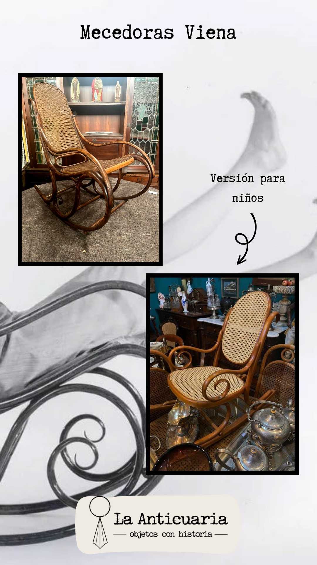 En La Anticuaria podemos encontrar numerosas Sillas Viena. Si bien comparten el concepto central de Thonet - curvaturas y alta resistencia; pueden variar en formas, funciones y materiales. A continuación podrán ver varias de ellas.
