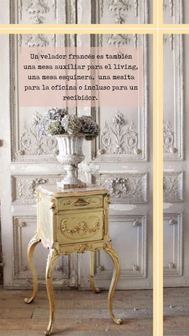Los veladores son por definición muebles indispensables situados al lado de la cama para guardar pertenencias personales, pero si hablamos de los veladores al estilo Luis XV la categoría “velador” se amplía extensamente cubriendo otras categorías; como lo son las clásicas mesas auxiliares de living, mesas esquineras, mesitas para oficina o incluso para un recibidor.