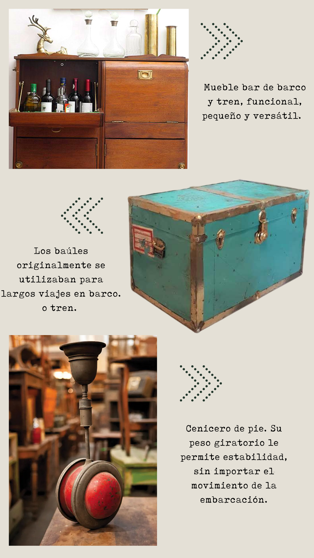 En La Anticuaria te invitamos a vivir este “trayecto olvidado” a través de su mobiliario y objetos que se utilizaban en estas largas travesías y que hoy le pueden dar un aire de “en tránsito” a tu casa.