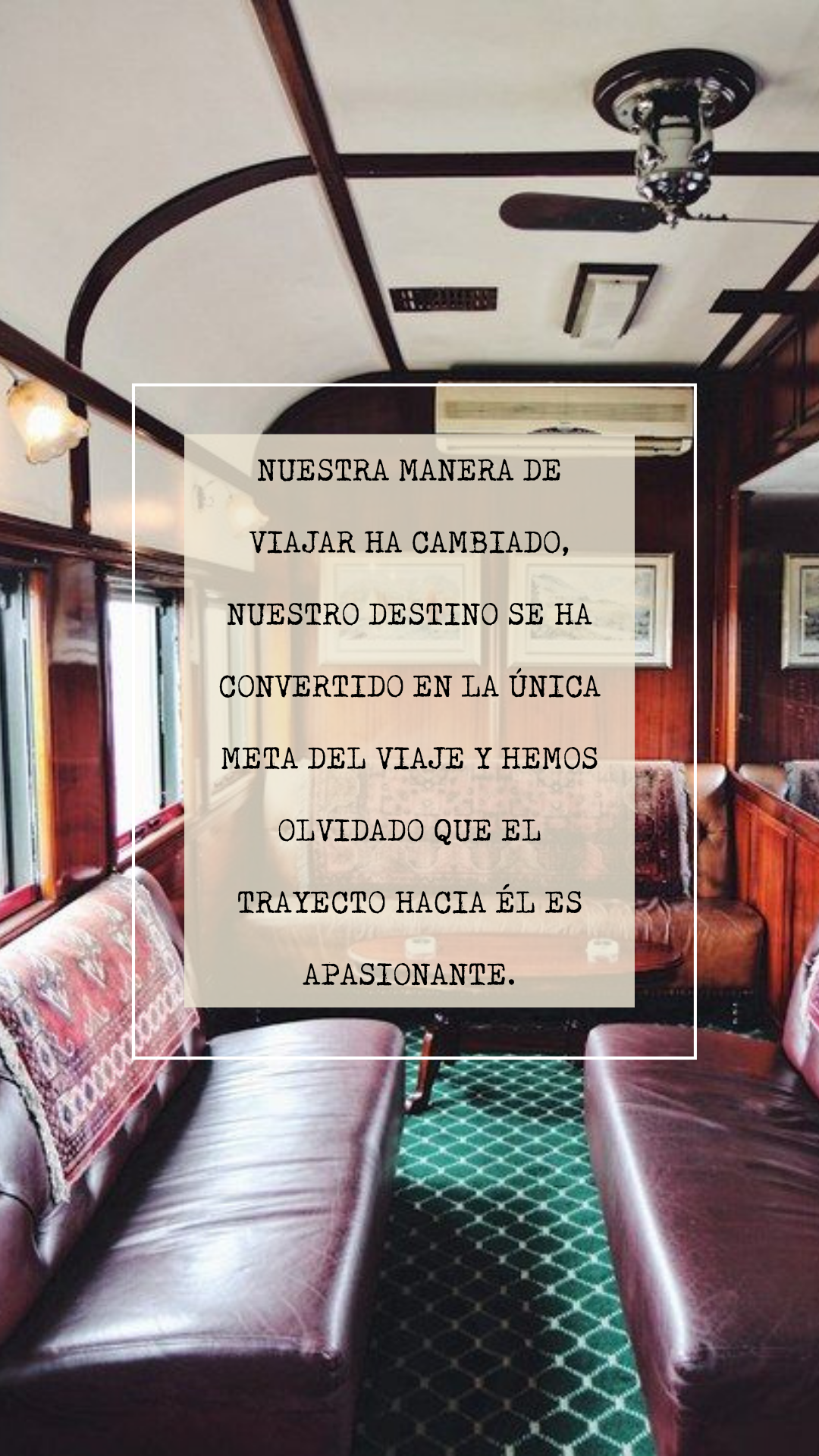 Nuestra manera de viajar ha cambiado, nuestro destino se ha convertido en la única meta del viaje y hemos olvidado que el trayecto hacia él es apasionante .
