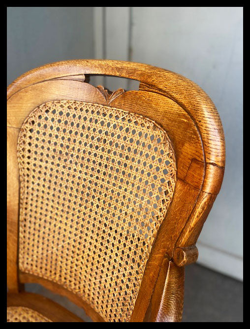 Silla de madera de roble con asiento y respaldo en junco.