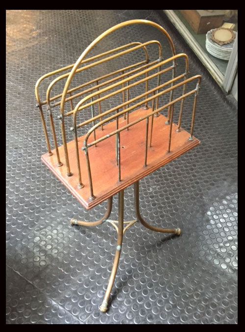 Los revisteros son muebles destinados a almacenar revistas y periódicos en zonas destinadas al descanso y la lectura. Existen miles de diseños, formatos y materialidades.El bronce es una aleación metálica de cobre y estaño. Fue la primera aleación de importancia hecha por el hombre e incluso da su nombre al período prehistórico de la Edad de Bronce.Este revistero, cuya estructura es completamente de bronce, tiene la gracia que se soporta sobre un estilizado pedestal de trípode y gira sobre su eje.