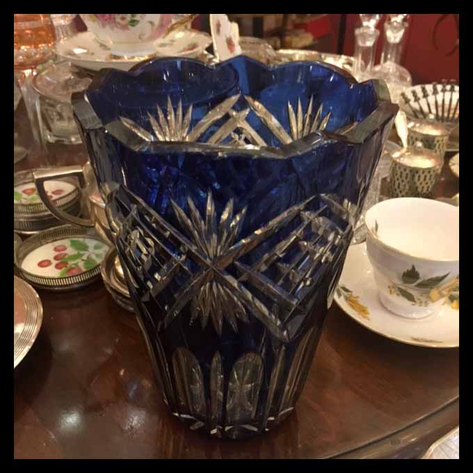 II.1377 FLORERO DE CRISTAL CORTADO AZUL
