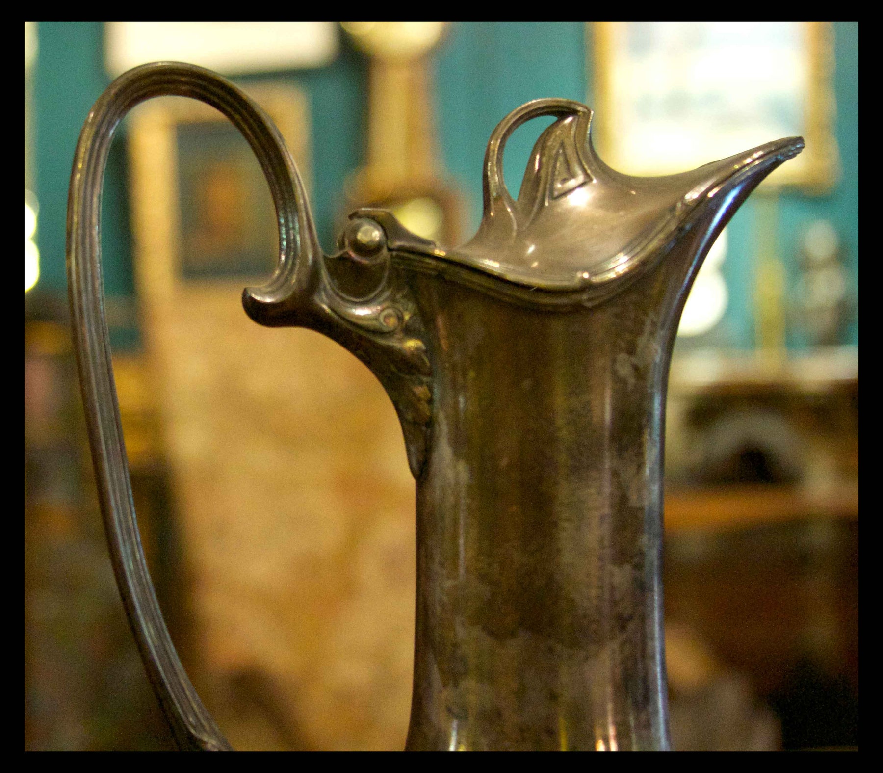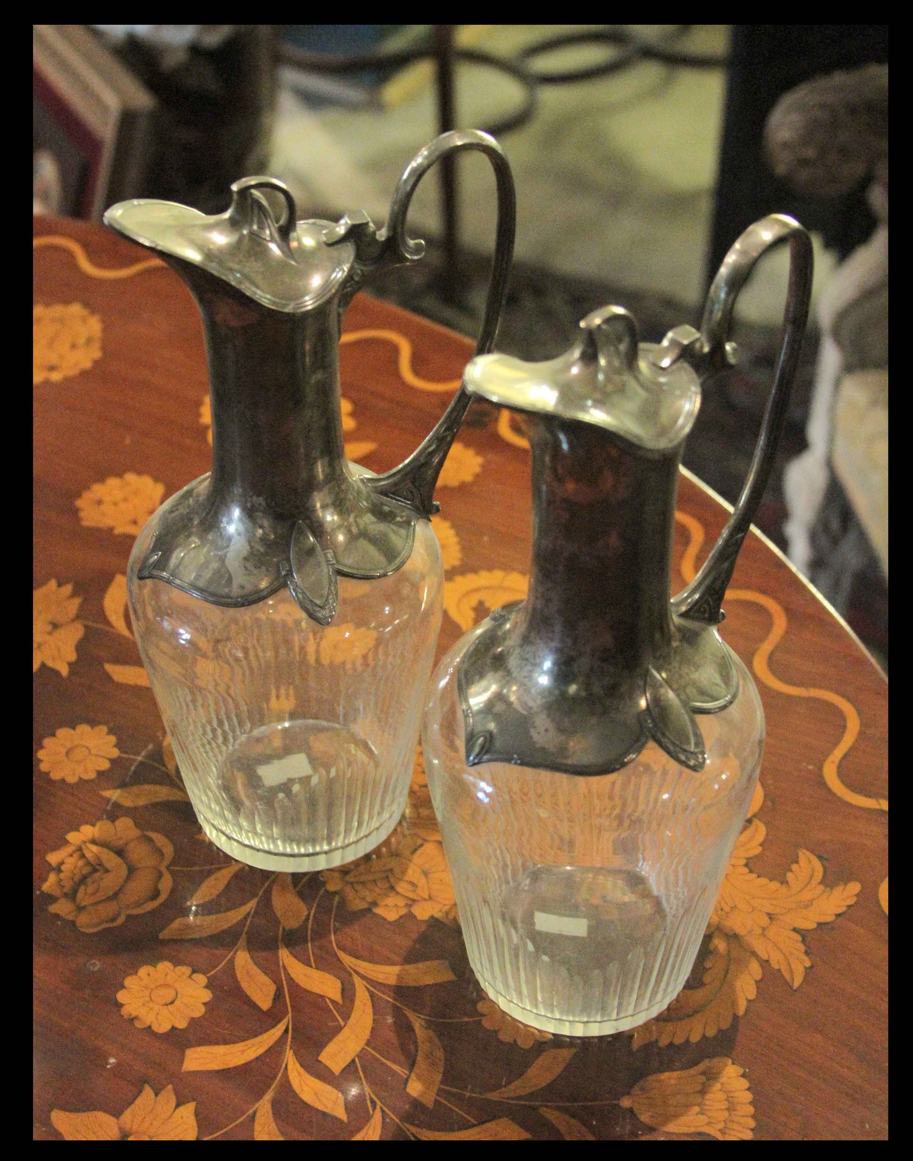 Hoy pueden tener múltiples usos para las salsas o aliños. La tradición dice que les llamaban mieleros y eran parte de la vajilla esencial de toda casa de buen pasar a la hora de tomar té. Este par de mieleros Art Nouveau de principios de 1900 son de la marca alemana WMF. Delicado trabajo de tallado en el cristal.