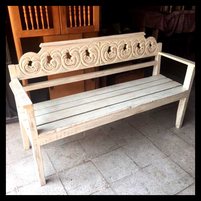 La historia de las camas es tan antigua como la historia de las civilizaciones. Las primeras camas las desarrollaron los egipcios, persas, griegos y romanos. Han evolucionado a la par con los diseños arquitectónicos y decorativos imperantes.Como hoy en día el box spring es el preferido, se han reciclado varios respaldos de camas antiguas para darles vida de otras formas.Este respaldo de cama adaptado, hoy es una banqueta de una plaza. Puede usarse en el interior o en el exterior.Mide 156 x 50 cm.