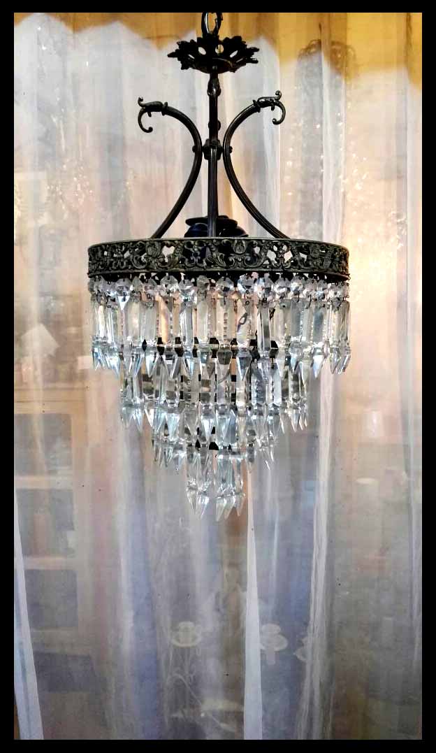 Desde la invención del fuego hasta nuestros días, el hombre ha buscado creativas formas de iluminar los espacios que habita. Al comienzo, eran las antorchas, luego los candiles seguidos de diversas formas de luminarias a petróleo que se activaban con fuego. Con la invención de la luz eléctrica los diseños y posibilidades de las lámparas aumentaron exponencialmente. Cada país y estilo imperante fue creando diversas formas de alumbrar.Esta es una lámpara de cristal y bronce de buen porte, que sirve para living y comedor. Mide 57 cm de alto y 30 cm de diámetro.