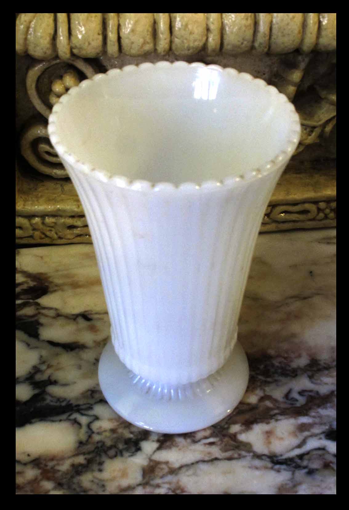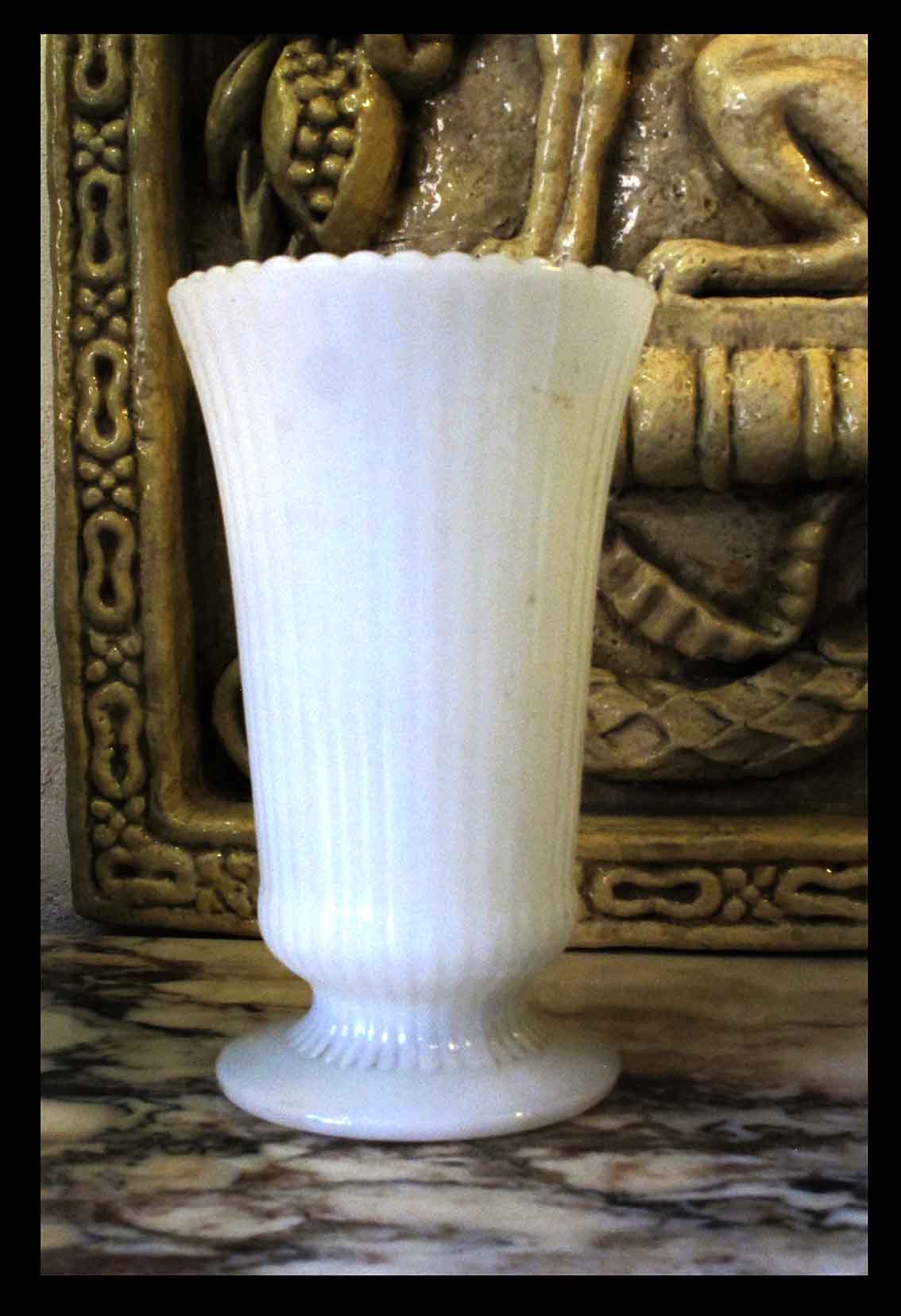 Florero alto de opalina, vidrio lechoso con calados y base circular. Aunque la opalina se desarrolló mucho en Venecia en el siglo XVI, su popularización en el desarrollo de vajillas en variados diseños fue a fines del siglo XIX. Se siguen fabricando con fuerza hasta hoy pues son el favorito de muchos coleccionistas. Altura 19,5 cm, Diámetro 12 cm.TII.238 FLORERO CALADOEDisponible$$55.000