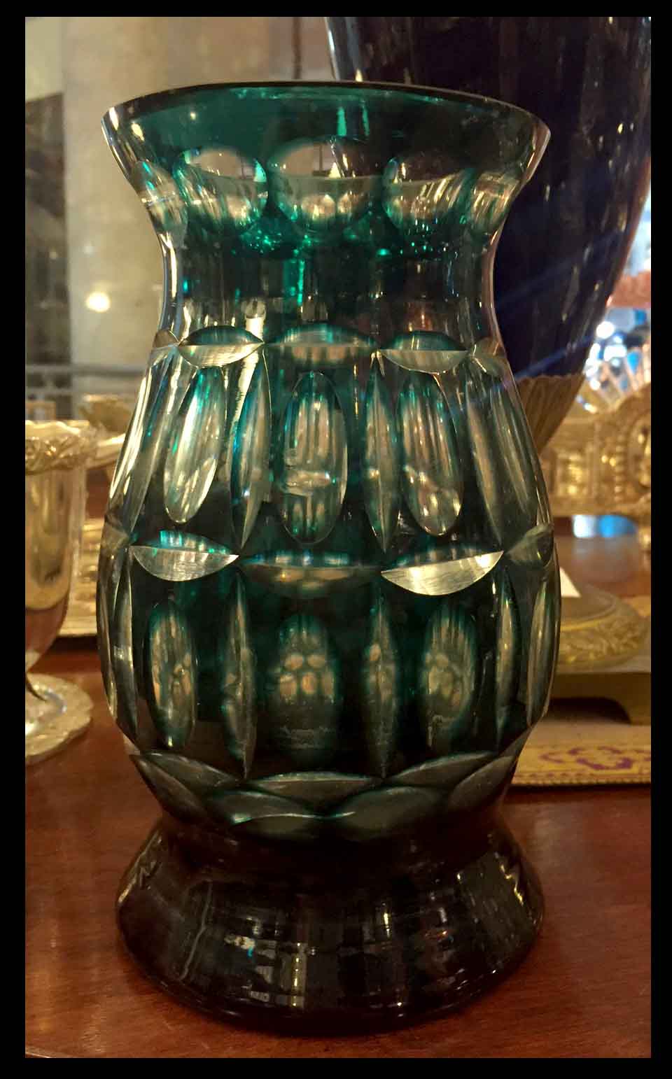 La principal función ornamental de un florero es decorar con flores espacios cerrados, brindando frescor, naturalidad, colorido y ricos olores.Los primeros arreglos florales son egipcios y se remontan a 2500 años AC. Recién comenzaron a usarse en Europa en el año 1000 principalmente en monasterios e iglesias. La chispa renacentista fue la que impulsó el desarrollo de la manufactura en torno a los arreglos florales.Este es un florero de cristal en tono verde.