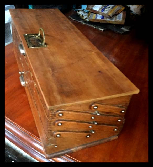 La costura era una labor común en los hogares de principios de siglo. Por tal razón es que se fabricó mucho mobiliario y objetos que apoyaban y facilitaban la labor en casa.Este sencillo costurero de madera de varios pisos, tiene la gracia de que es fácil de transportar y se encuentra subdivido en infinitos compartimentos en los que antiguamente se ordenaban los hilos. Hoy se le puedes dar múltiples usos, entre ellos la de joyero.TII.315 COSTUREROEVendido$Vendido