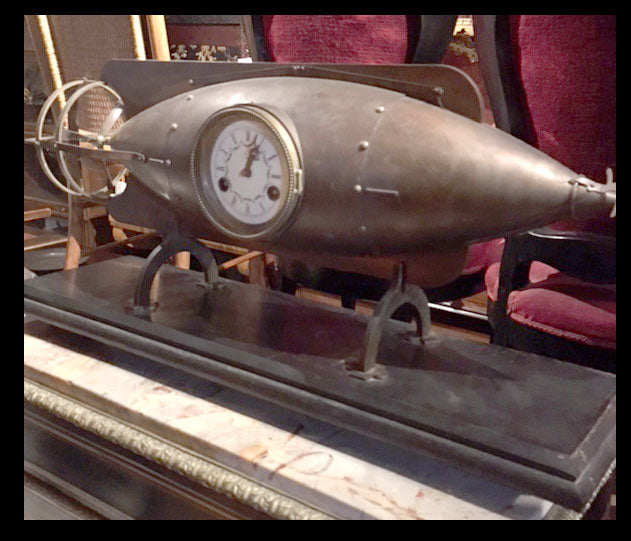 Uno de los primeros dispositivos que emplearon con éxito los principios esenciales para el vuelo de un cohete fue un pájaro de madera. Los escritos de Aulus Gellius, un romano, cuentan la historia de un griego llamado Achrystas que vivió en la ciudad de Tarentum, hoy parte del sur de Italia. Alrededor del 400BC., Archystas desconcertó y divirtió a los habitantes de Tarentum haciendo volar una paloma hecha de madera. Utilizó vapor como el gas propulsor.Los chinos se registran como ser los primeros en usar cohetes reales alrededor del I A.C. Los utilizaron como dispositivos de colores durante las festividades religiosas, algo como los fuegos artificiales de hoy. Al parecer los primeros sistemas de propulsión de cohetes fueron utilizados entre los años 1200 y 1300 en Asia, utilizando un propelente que incluye una mezcla de salitre, azufre y carbón vegetal.Este cohete de colección es un reloj, y gira el aspa cuando da la hora.