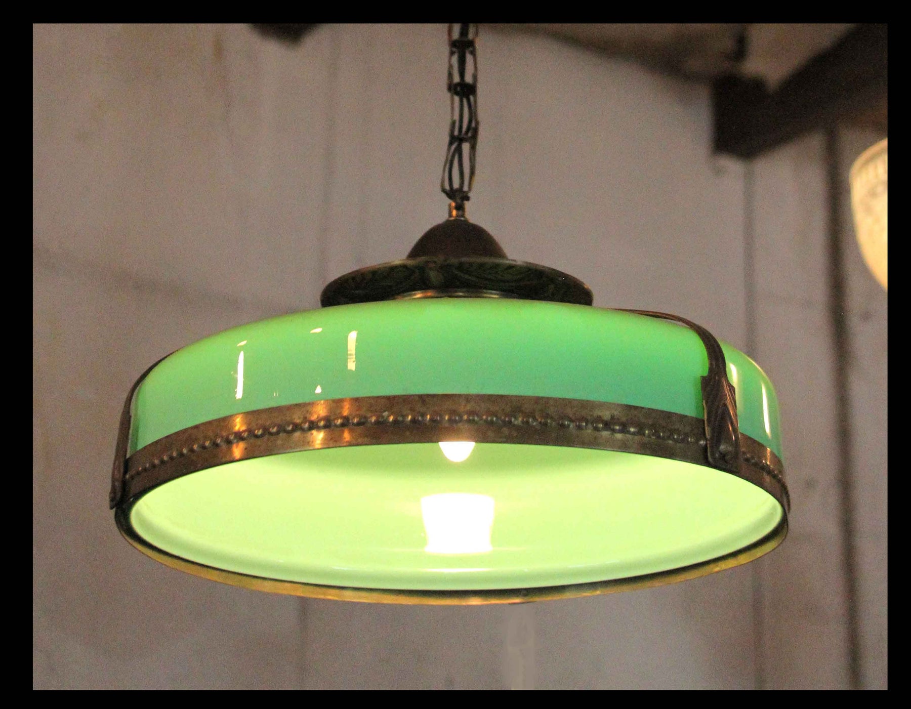 El vidrio opalino o lechoso es un vidrio semitraslúcido que se popularizó en Italia en el siglo XVI y se usó con mucha fuerza en decoración en Europa a fines del siglo XIX y principios del XX.Esta lámpara colgante destaca por su cadena antigua y sus terminaciones de bronce, además del especial color que da al iluminarse.TII.2 LÁMPARA COLGANTE DE OPALINA TURQUESAEVendida$Vendida