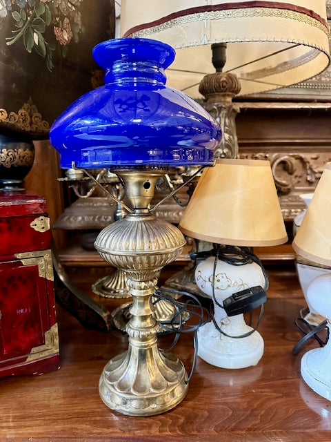 II.5070 LÁMPARA DE BRONCE Y PANTALLA AZUL