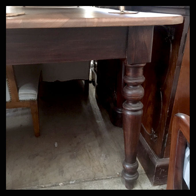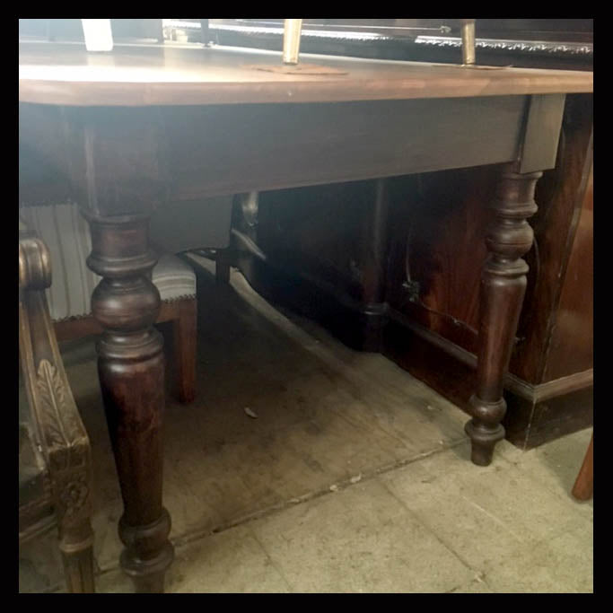 La mesa es un mueble surgido de la ancestral necesidad del hombre de sostener objetos a una altura cómoda para su uso. Su origen se remonta a la época de las cavernas y es uno de los muebles que mayor diversificación ha tenido a lo largo de los años. Recién a comienzos del siglo XX, se empiezan a desarrollar principalmente en Francia, mesas más ligeras, tipo mesas auxiliares que brindan mayor versatilidad a los espacios.Esta es una mesa chilena de raulí que mide 218 x 100 cm.