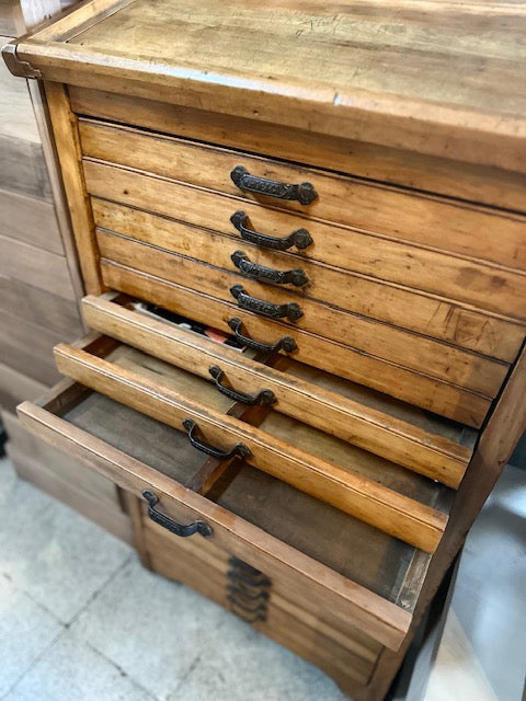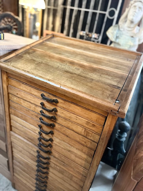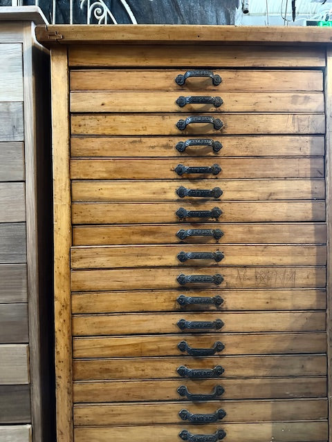 Altura del frontis es 118 cm. Es un. Antiguo mueble para guardar tipos de la imprenta.