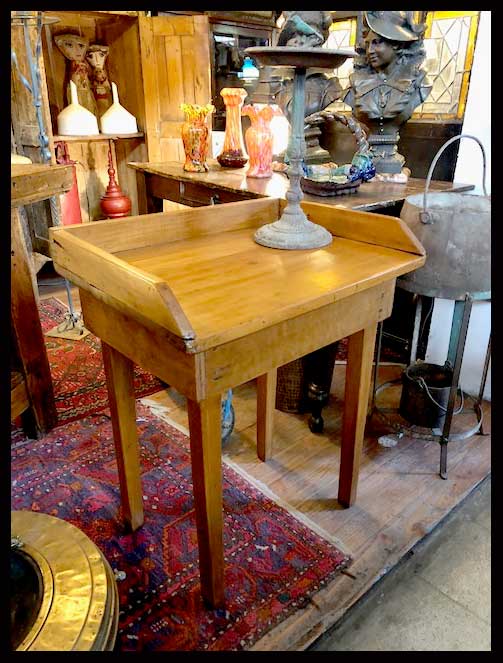La mesa es un mueble surgido de la ancestral necesidad del hombre de sostener objetos a una altura cómoda para su uso. Su origen se remonta a la época de las cavernas y es uno de los muebles que mayor diversificación ha tenido a lo largo de los años. Recién a comienzos del siglo XX, se empiezan a desarrollar principalmente en Francia, mesas más ligeras, tipo mesas auxiliares que brindan mayor versatilidad a los espacios.Este es un antiguo mesón de amasar de madera restaurado. Puede servir como arrimo o escritorio.