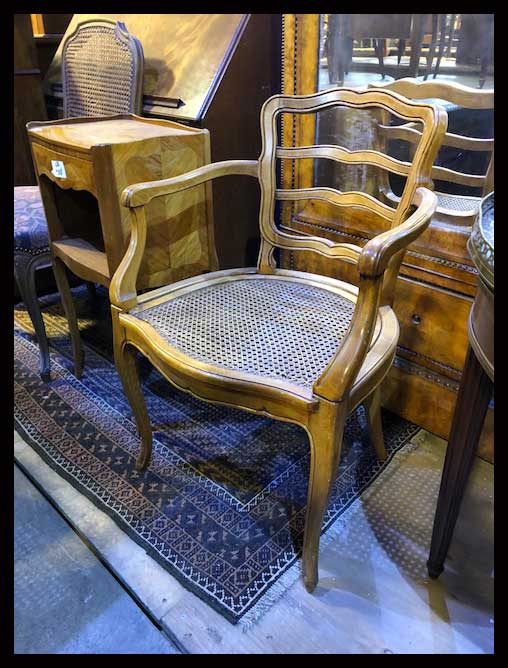 Silla de madera con asiento de junco. El enjuncado se utiliza en la confección de muebles desde tiempos muy remotos, importado desde Asia hacia Europa. Con los diseños de Thonet alcanzó su máxima popularidad.