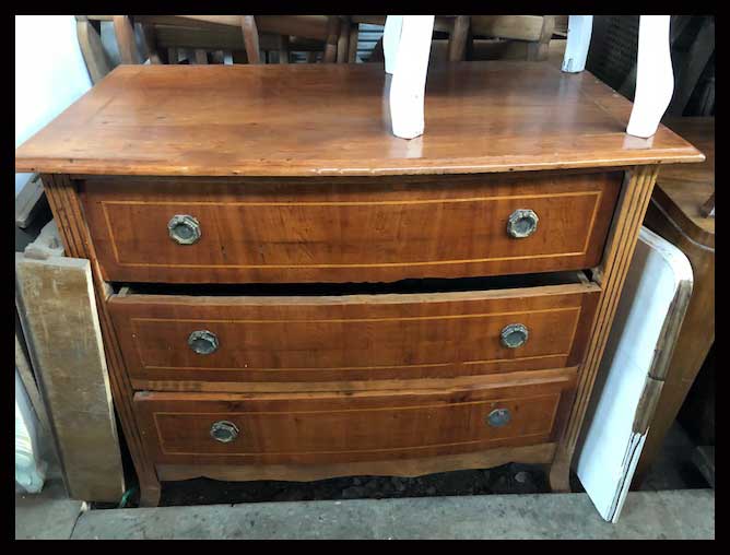 La cómoda surgió como producto de la evolución de la parte inferior del armario. Se suelen utilizar para guardar ropa, pero también vajilla u otros objetos.Esta es una cómoda de origen alemán con tres grandes cajones.