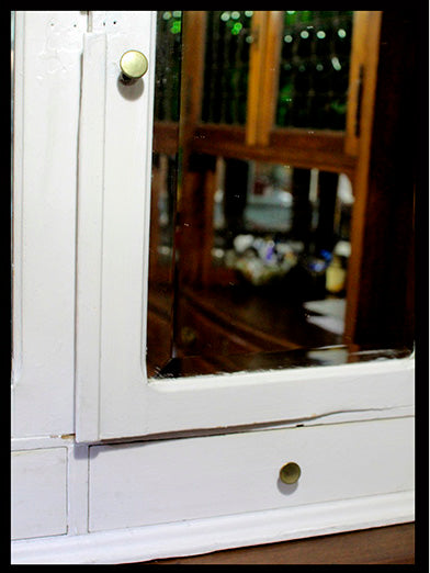 Botiquín chileno de madera de lingue, pintada blanca.