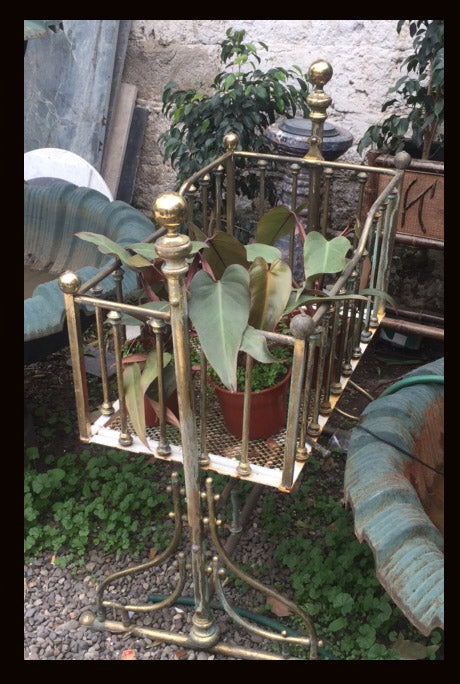 Cuna mecedora de bronce con todas sus pirinolas y base en perfecto estado. Estas cunas originalmente se cubrían con un velo. Tiene la pieza superior de bronce en donde puede colgarse un velo o móvil para el bebé.