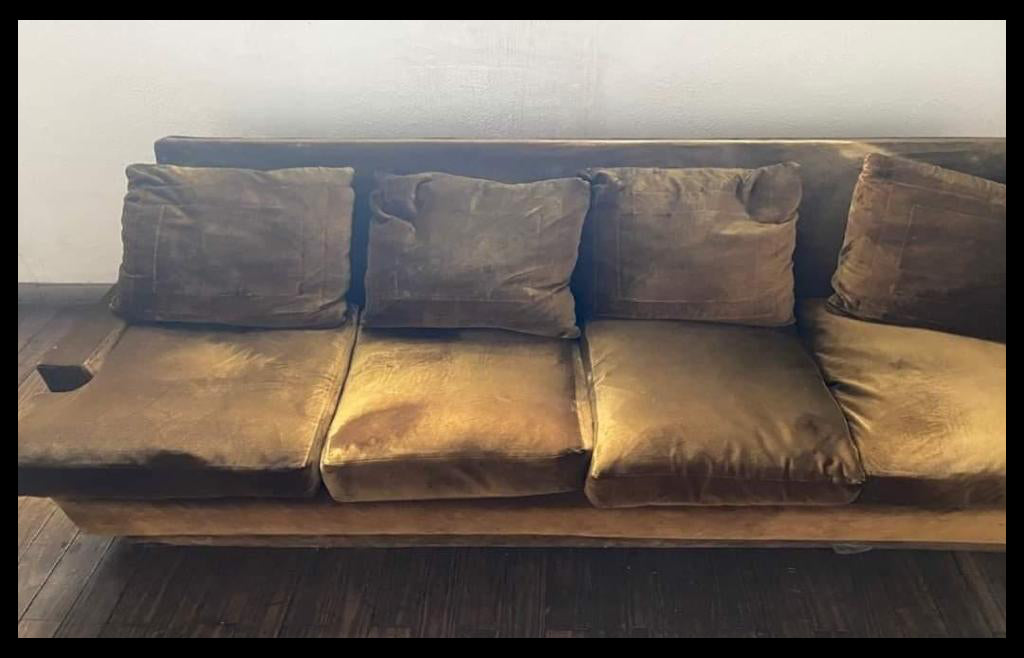 Este es un juego Matta en tapiz original en felpa. El juego consiste en un sofá y 2 sillones.