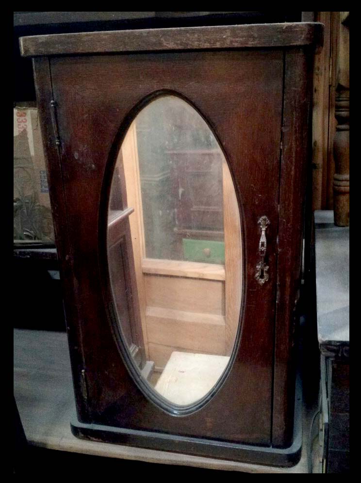 Mueble tipo botiquín de baño de madera que posee una puerta con un espejo ovalado. Sus dimensiones son 35 x 27 x 60 cms.Muchos de los productos que usamos en el baño no son tan decorativos y son personales. De tal forma, es preferible no tenerlos exhibidos, sino guardados en muebles que cumplan mejores objetivos decorativos.