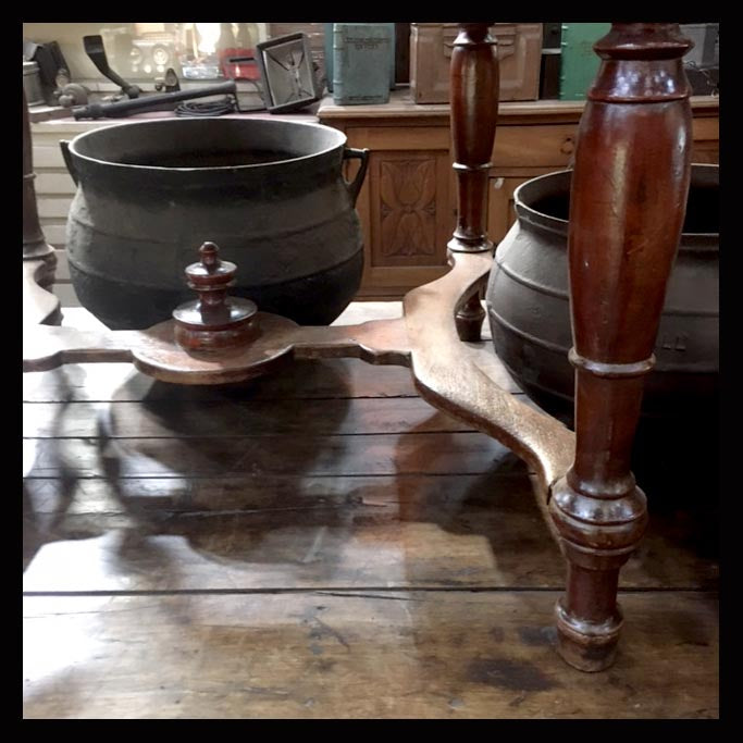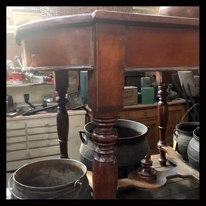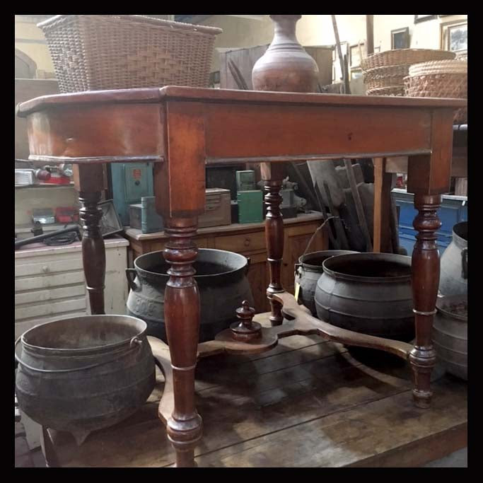 La mesa es un mueble surgido de la ancestral necesidad del hombre de sostener objetos a una altura cómoda para su uso. Su origen se remonta a la época de las cavernas y es uno de los muebles que mayor diversificación ha tenido a lo largo de los años. Recién a comienzos del siglo XX, se empiezan a desarrollar principalmente en Francia, mesas más ligeras y con múltiples funciones, que aprovechan mejor los espacios.Esta mesa colonial inglesa es de madera y tiene patas torneadas.Sus medidas son 112 x 85 x 81 cm.