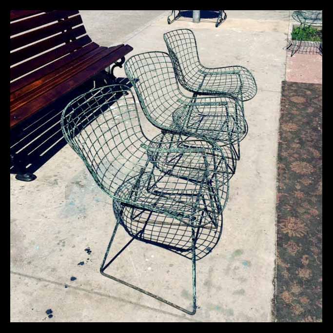 Desde el siglo XIX, comenzó a trabajarse con especial dedicación en mobiliario y artefactos de fierro forjado para decorar los jardines de las estancias. Todas estas piezas destacan por la curvatura y delicadeza de su forma y decorados. Tienen además la característica de enfrentar de mejor manera la corrosión de la intemperie.La dificultad de soldar tales piezas de fierro curvado ha hecho que se utilice principalmente para muebles y objetos decorativos.Este es un sexteto de sillas de exterior de fierro fundido.