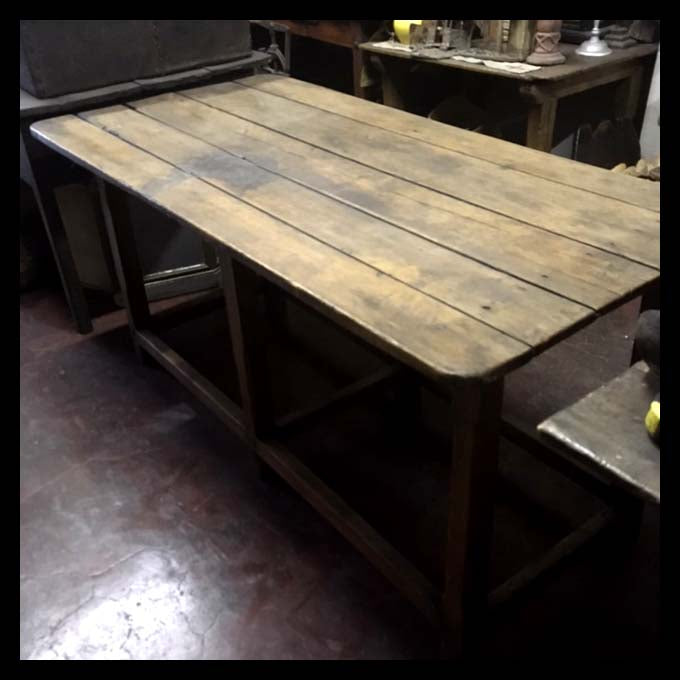 La mesa chanchera le debe su apodo al hecho que en ella se faenaban los chanchos en el campo. Es una mesa rústica de trabajo construida con tablones y de patas rectas.Es una denominación local para una mesa de trabajo en el campo a la que no se le da ningún tipo de tratamiento, sino simplemente permitir que los años dejen su huella en la madera.Esta es una chanchera de madera clara.Mide 155 x 78 x 77 cm de alto.