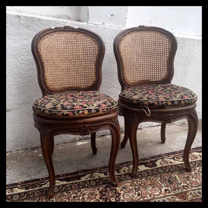 Son de madera tallada. El sofá y los sitiales tienen terminaciones con tachas de bronce, y las sillas son con respaldo de junco.Medidas: