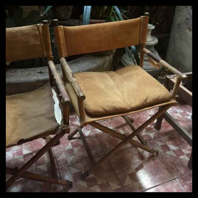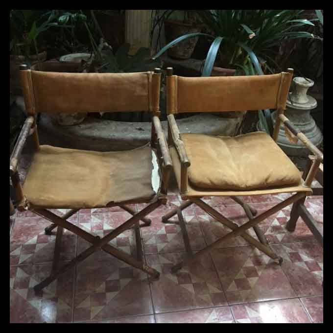 Par de sillas de director originales del mueblista chileno Mario Matta. Vienen con su tapiz de gamuza original que cubre toda la superficie de la silla.