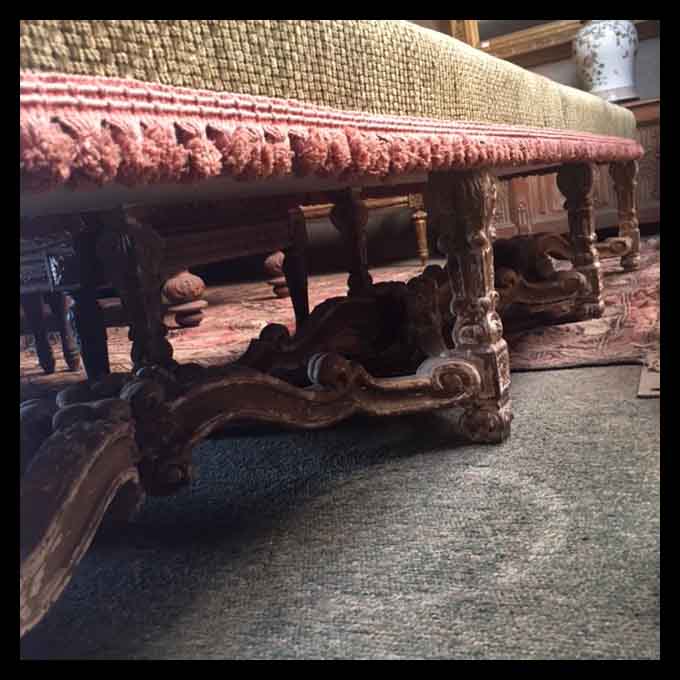 Banca original del mueblista chileno Mario Matta, hecha en los años 60. Tiene patas con un tallado muy delicado que viene con su pátina original.