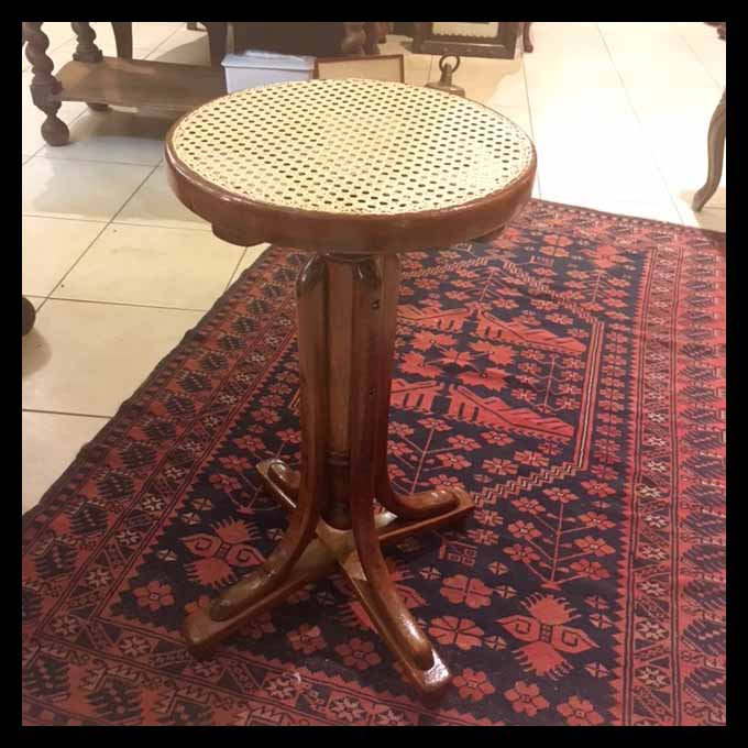 Su obra consagró la técnica del enjuncado durante el siglo XIX.Piso Viena de madera de haya curva y asiento enjuncado. Mide 38 cm de diámetro y 73 cm de alto.