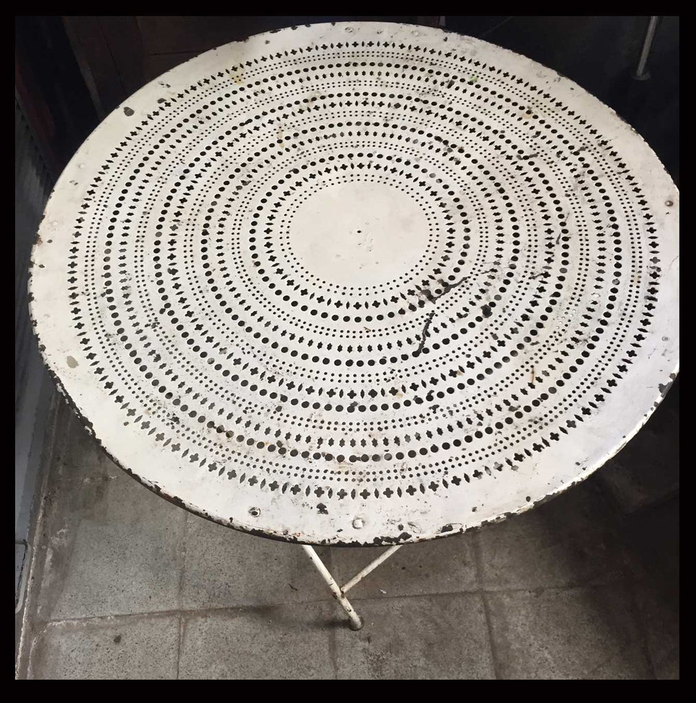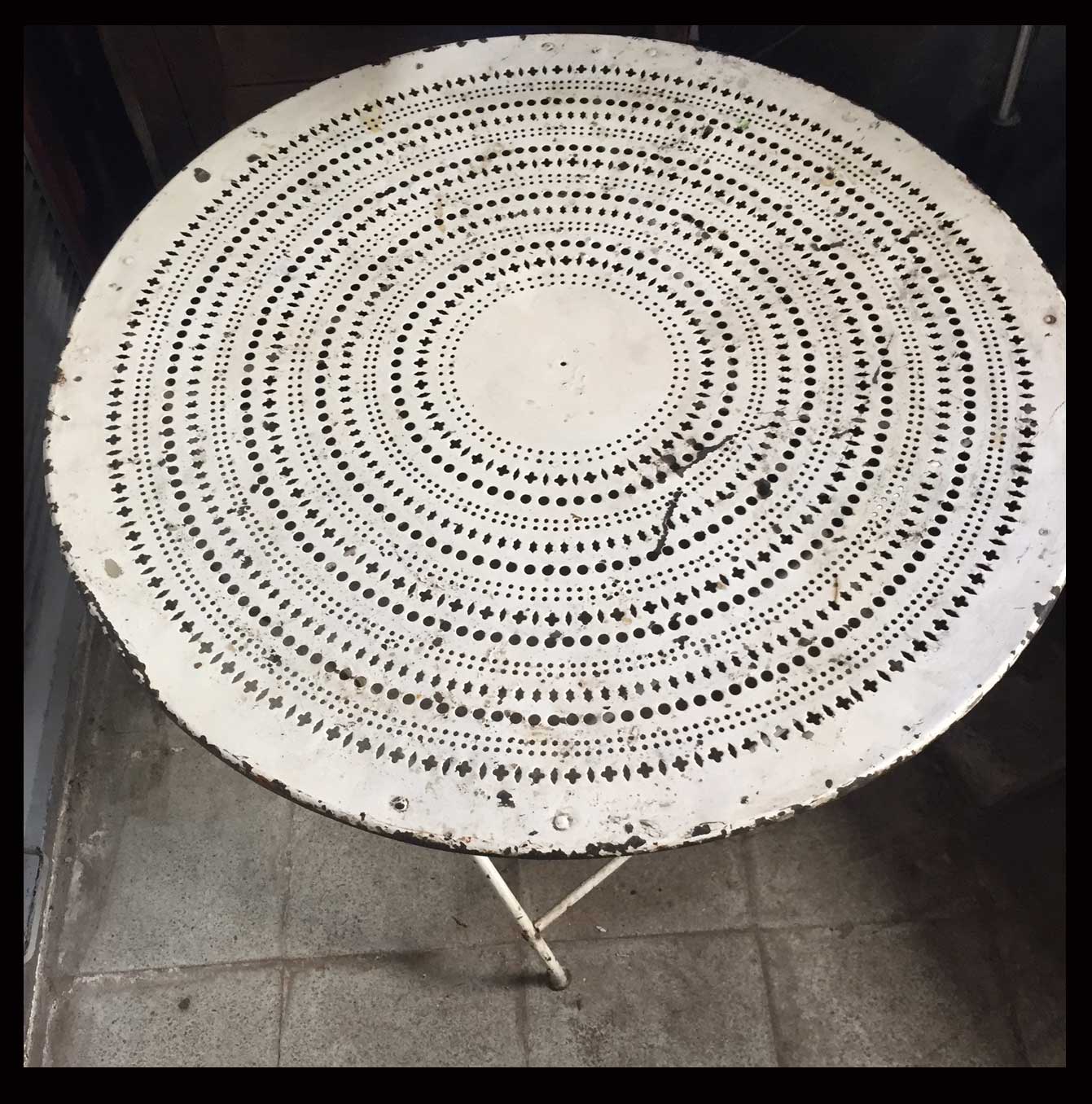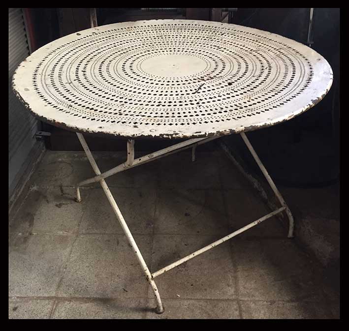 Esta es una mesa inglesa de fierro blanco, ideal para un ambiente de terraza.
