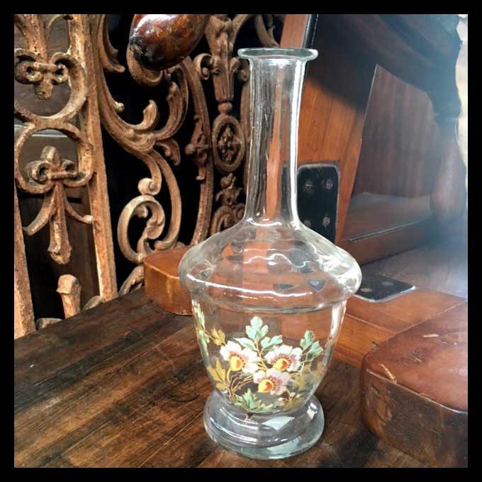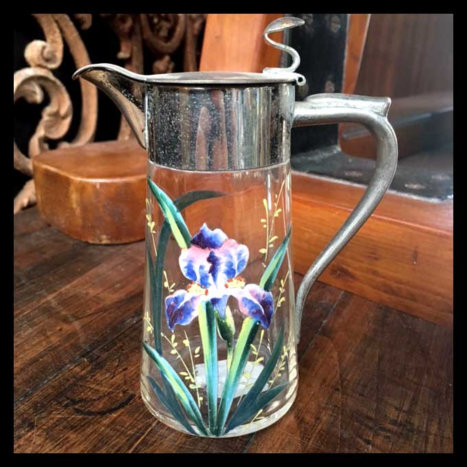 La principal función ornamental de un florero es decorar con flores espacios cerrados, brindando frescor, naturalidad, colorido y ricos olores.Los primeros arreglos florales son egipcios y se remontan a 2500 años AC. Recién comenzaron a usarse en Europa en el año 1000 principalmente en monasterios e iglesias. La chispa renacentista fue la que impulsó el desarrollo de la manufactura en torno a los arreglos florales.Estos son un florero y una jarrita pintada en volumen con tapa de plaqué y asa.
