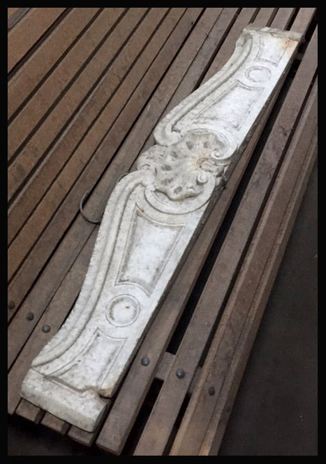 Las molduras son elementos decorativos en relieve que se utilizan en arquitectura, diseño y carpintería con fines fundamentalmente ornamentales. Esta moldura es parte de la cenefa de una chimenea. Es blanca, con terminaciones curvas y detalles tallados. Puede utilizarse como parte de un marco, para colgar de manera decorativa o para poner en su lugar original.