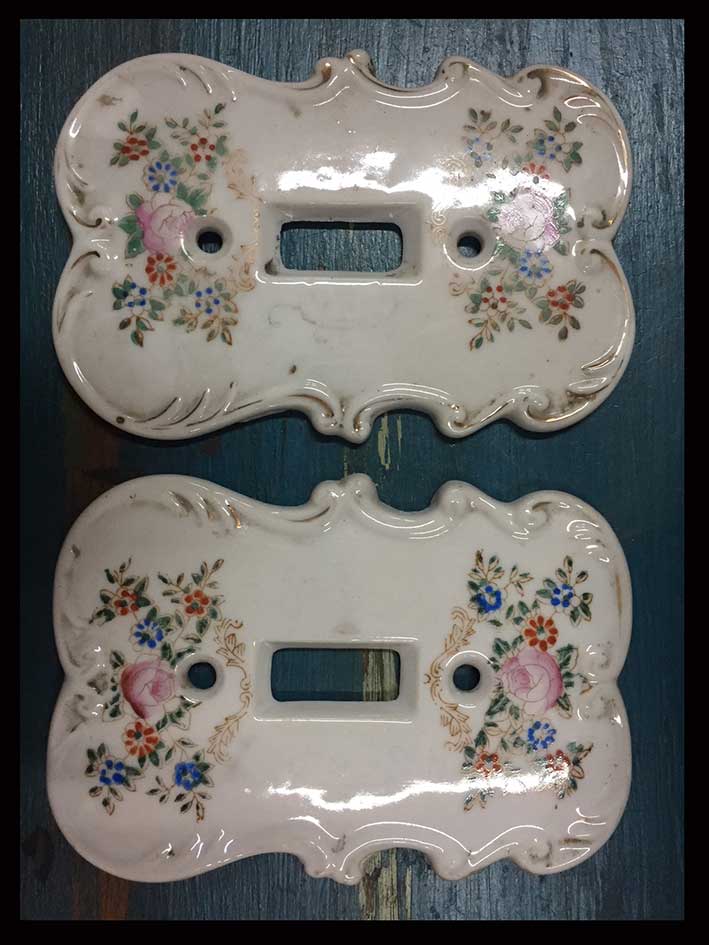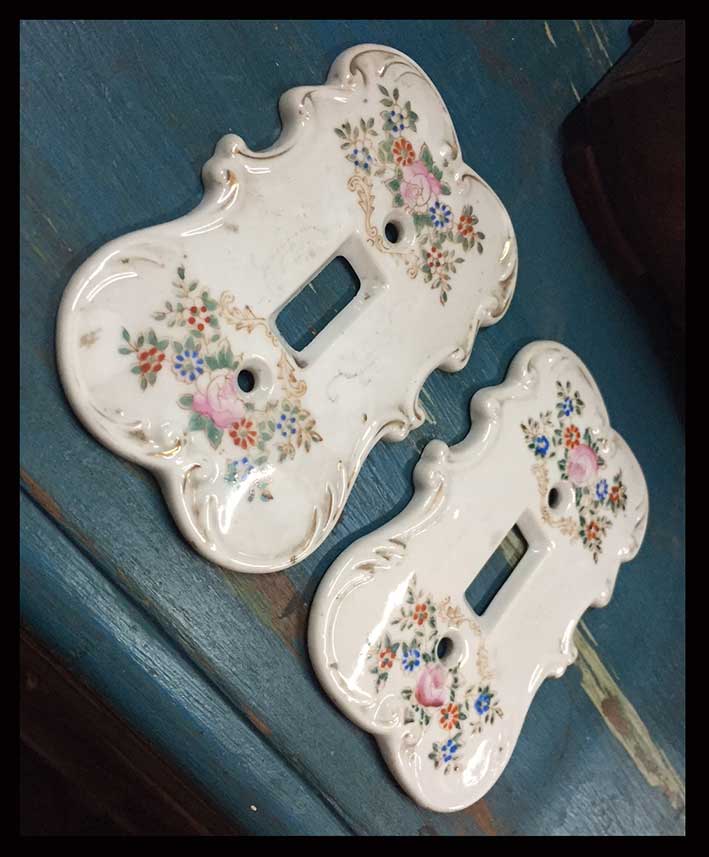 Con origen en un término italiano, la porcelana es una especie de loza fina que fue inventada en China entre los siglos VII y VIII. Se trata de un producto cerámico que suele ser blanco, translúcido, compacto y duro.Par de interruptores de porcelana blancos con flores de colores.