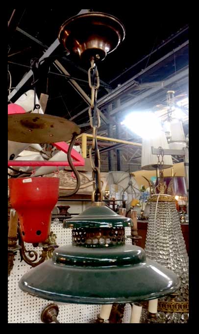 La invención de la luz eléctrica permitió diversificar en gran medida el diseño de nuevas formas de iluminación.Lámpara industrial de techo con cadena de bronce y pantalla verde.