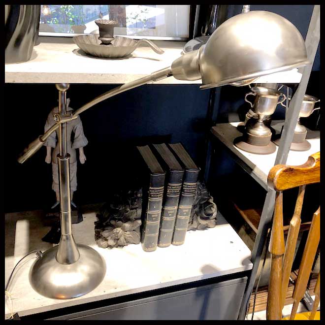 La invención de la luz eléctrica permitió diversificar en gran medida el diseño de nuevas formas de iluminación.Lámpara de escritorio de acero inoxidable, tiene brazo ajustable, lo que permite regular la posición de la luz.