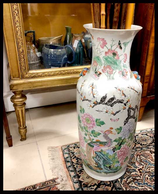 Con origen en un término italiano, la porcelana es una especie de loza fina que fue inventada en China entre los siglos VII y VIII. Se trata de un producto cerámico que suele ser blanco, translúcido, compacto y duro.Gran jarrón chino de porcelana. Es blanco con dibujos floreados en distintos colores.