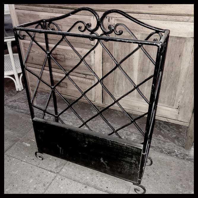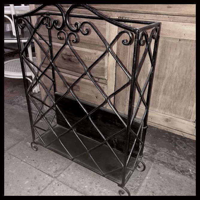 Paragüero o bastonero rectangular de fierro fundido negro. A diferencia de los tradicionales paragüeros redondos, este cuenta con un amplio espacio.