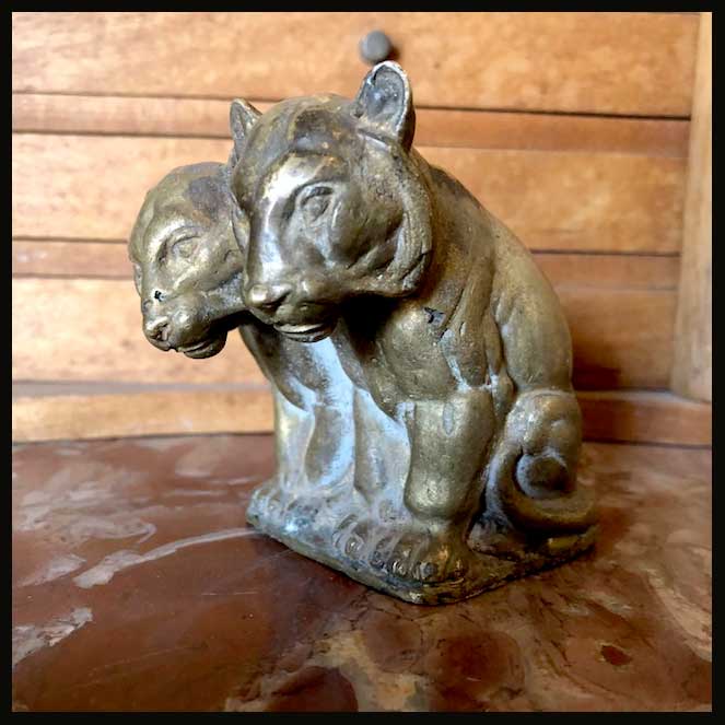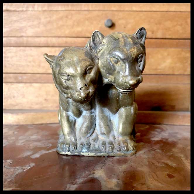 El bronce es una aleación metálica de cobre y estaño. Fue la primera aleación de importancia hecha por el hombre e incluso da su nombre al período prehistórico de la Edad de Bronce.Figura de bronce decorativa con la imagen de dos panteras.
