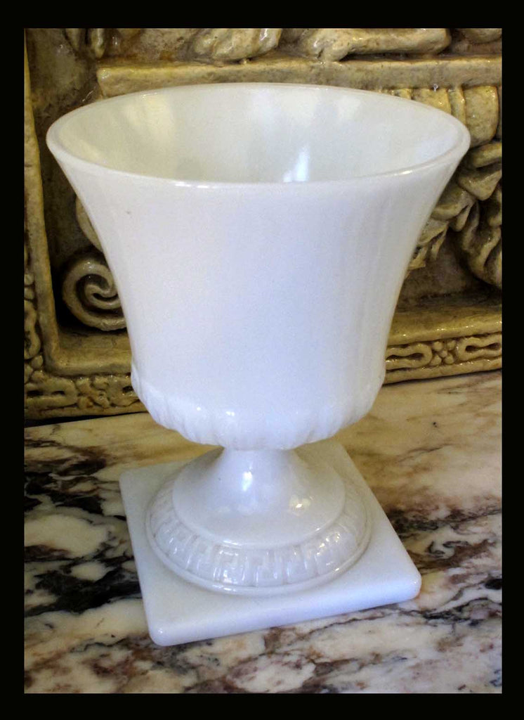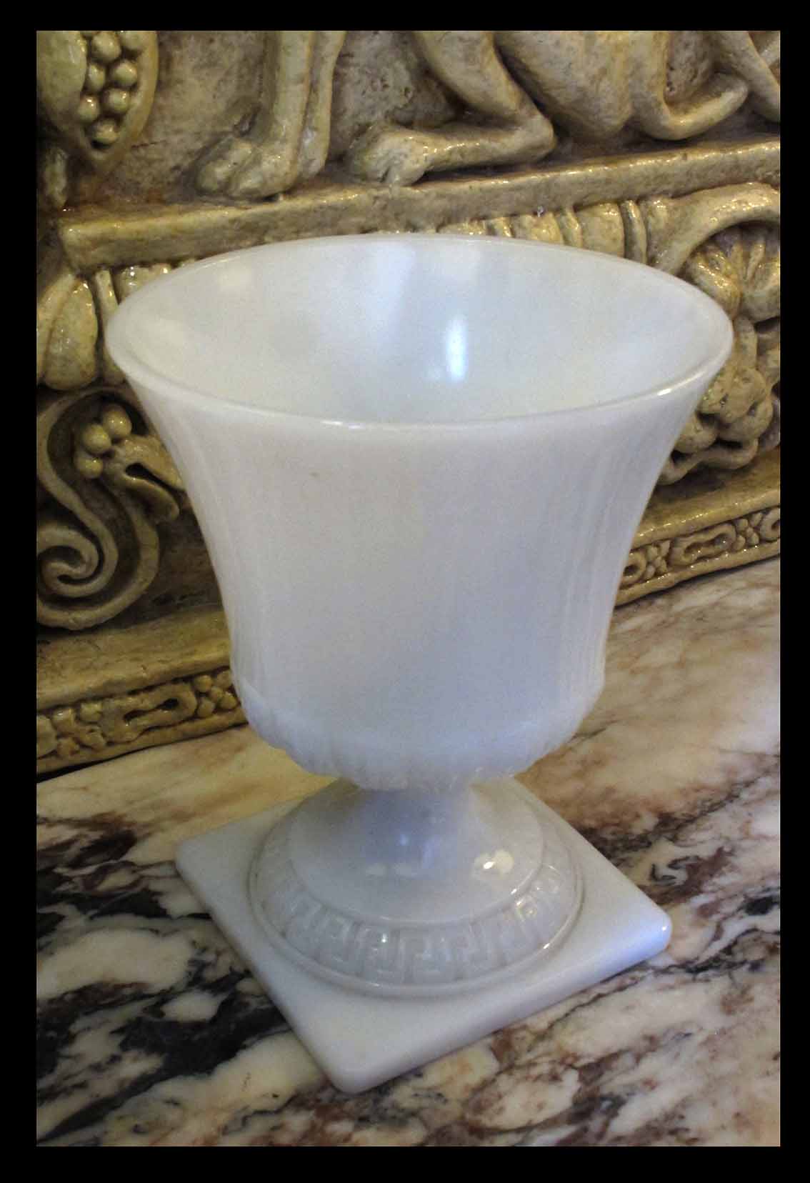 Copón liso de opalina, vidrio lechoso con base cuadrada y diseños geométricos. Aunque la opalina se desarrolló mucho en Venecia en el siglo XVI, su popularización en el desarrollo de vajillas en variados diseños fue a fines del siglo XIX. Se siguen fabricando con fuerza hasta hoy pues son el favorito de muchos coleccionistas. Altura 22 cm, Diámetro 18 cm. TII.243 COPÓN LISO DE OPALINAEDisponible$$85.000