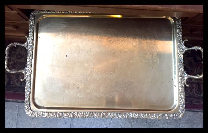 En Europa se comenzó a consumir té a partir del siglo XVII y recién a fines del sXVIII se desarrollaron servicios completos sobretodo en Inglaterra. La sofisticación en el servicio, llevó a desarrollar especiales y delicadas bandejas, que eran en soporte en que se presentaban las distintas piezas.Comúnmente estas piezas se desarrollaron en estaño y plata.Lo particular de esta bandeja es que es de bronce y, por lo tanto su color y viso es muy original y especial.TII.314 BANDEJA DE BRONCEEVendida$Vendida