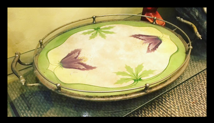 En la Europa del siglo XIX, el refinamiento en la manera de servir los alimentos y en el modo de crear un marco adecuado para degustarlos alcanzó su mayor esplendor. La industria de la cerámica se encargó de satisfacer las necesidades de un público cada vez más exigente con variados accesorios. Entre ellos, esta delicada bandejas de loza, pintadas a mano y bordeada por verdaderos encajes de metal.